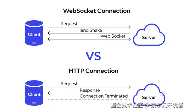 WebSocket 连接的建立依赖 HTTP 协议完成 “握手”,本质是将 HTTP 连接升级为 WebSocket 连接;
