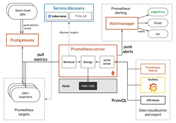 像 Telegraf 这样的基于代理的采集器(支持 200+ 数据源)会主动从系统中收集指标。无代理采集器使用 API 和远程协议在不安装本地软件的情况下拉取数据。Prometheus 凭借其基于拉取的模型和强大的多维数据结构,已成为云原生监控的事实标准。Filebeat 专注于日志收集,提供弹性传输、反压处理和检查点恢复。