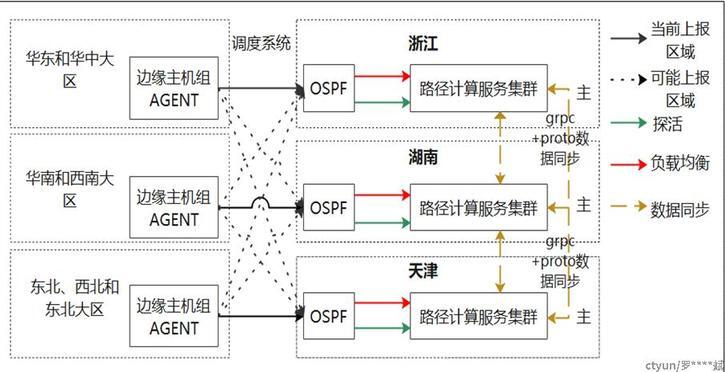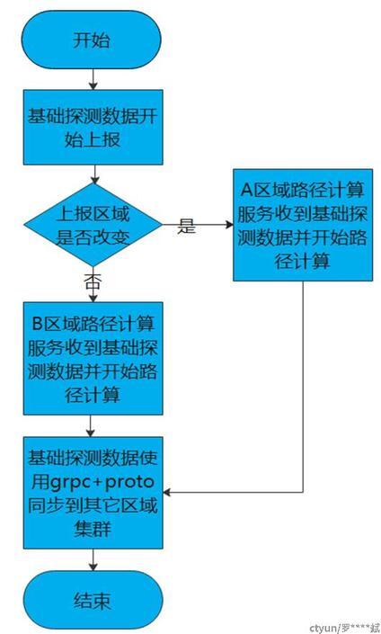 实现路径计算服务在不同区域内的路径计算服务集群之间的数据同步功能,打破各区域数据孤岛问题而导致的边缘主机组基础探测数据无法在各区域来回切换上报,并可以按区域实现垂直扩展,达到去中心化,解决高可用的同时,也提高了计算速度