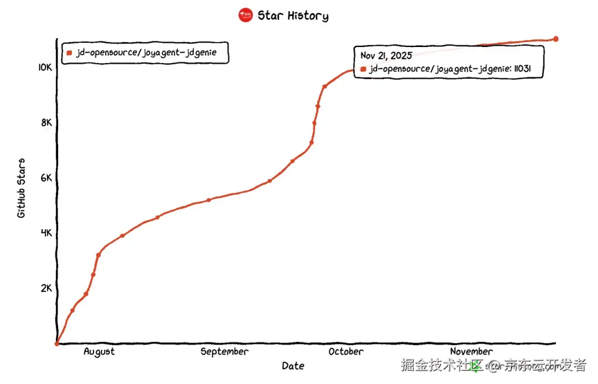 JoyAgent 是京东自主研发的智能体引擎平台。今年 7 月,其多智能体引擎模块 AutoBots(JDGenie)正式开源;9 月,在 JDGenie 基础上进一步开源 DataAgent 能力,持续推进智能体技术在开源社区的共建与共享。当前已经 Star 数已经达到 11k。