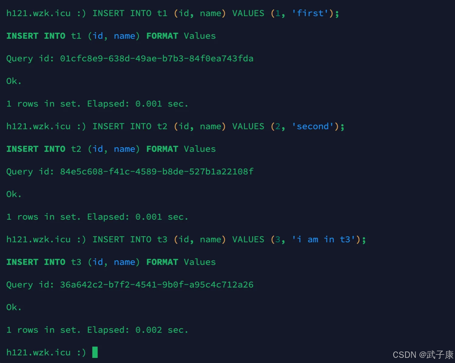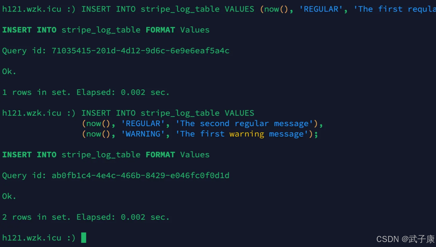 我们使用两次 INSERT 请求从而在 data.bin 文件中创建两个数据块。