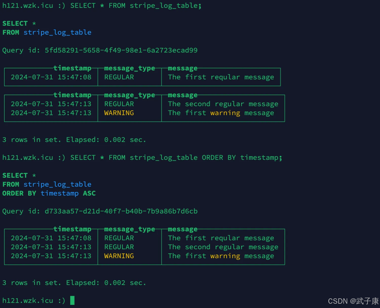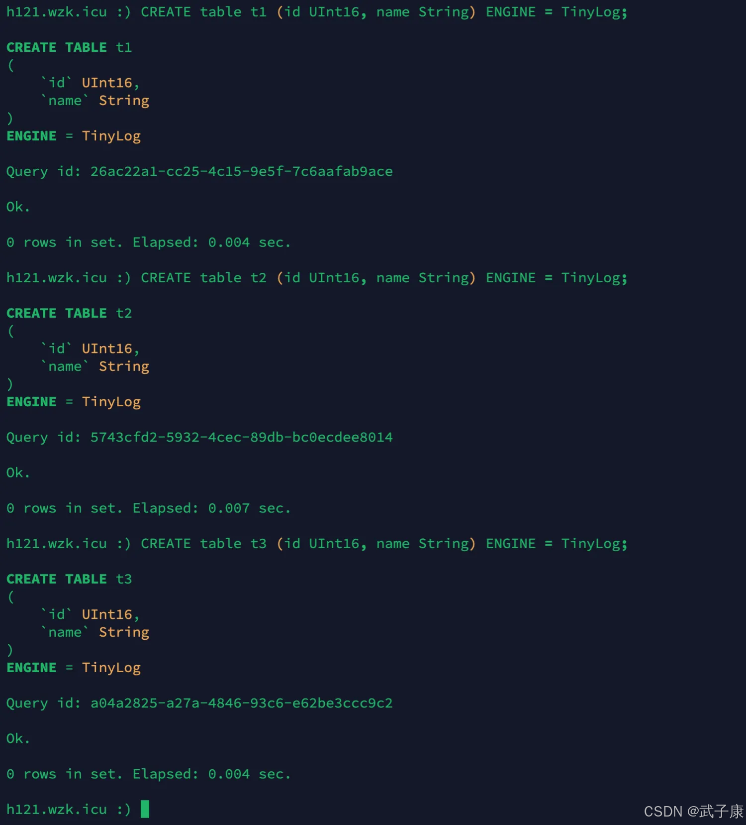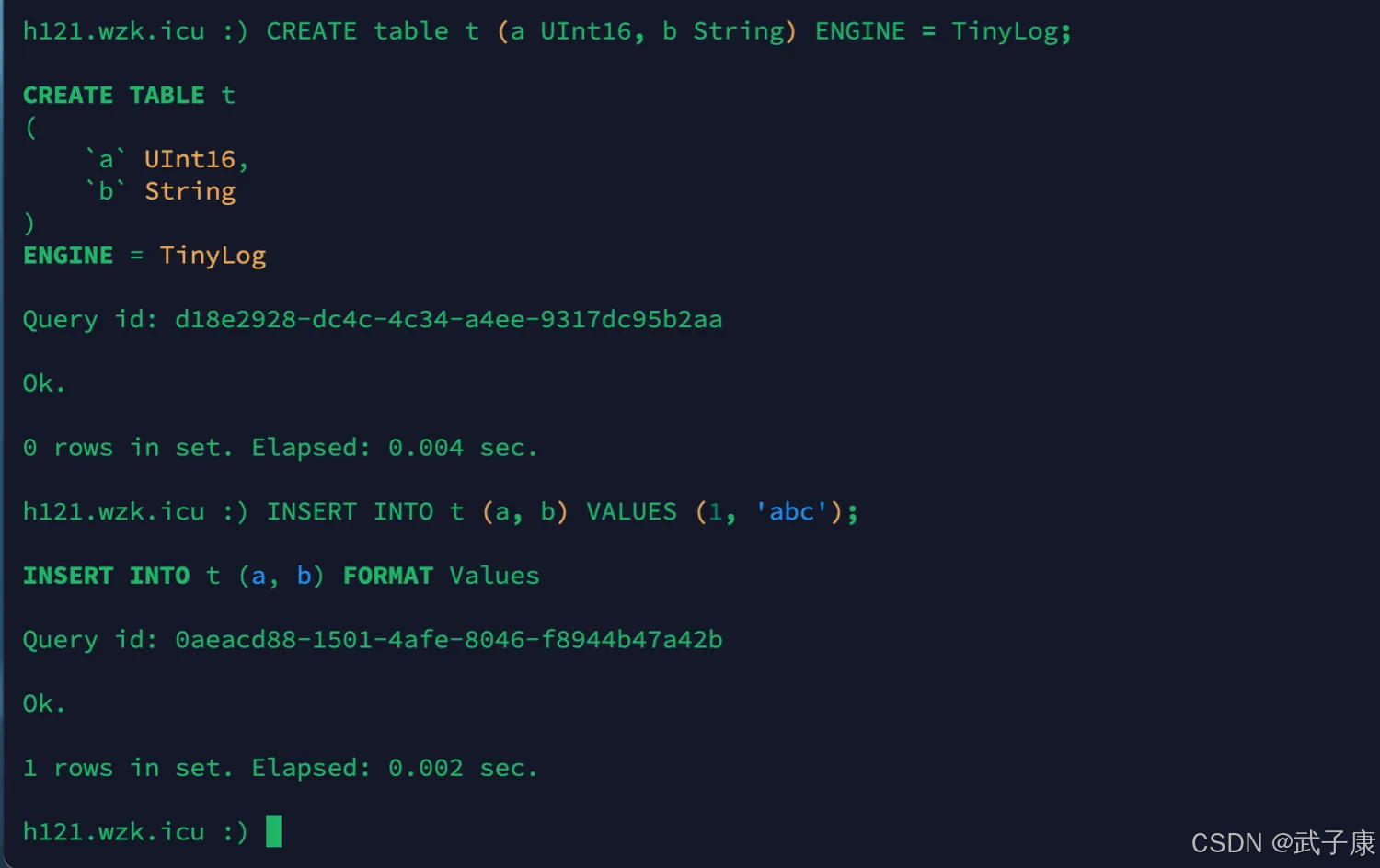 TinyLog:适合嵌入式场景或测试,性能更简单,不能处理大规模数据。