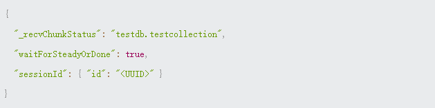 进入临界区后,源分片向目标分片发送"_recvChunkCommit"请求,同时阻塞等待目标分片返回进度内容,请求内容如下: