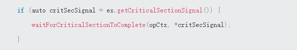 进入临界区后,当用户写迁移 chunk 数据到源分片如果发现当前处于临界区则需要阻塞等待,对应阻塞等待伪代码如下: