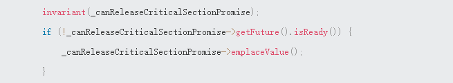 修改 chunk 元数据完成后,源分片发送 _recvChunkReleaseCritSec 请求给目标分片。目标分片处理该请求的线程通过下面代码通知 D(T8)阶段阻塞的 migrateThread 线程释放临界区: