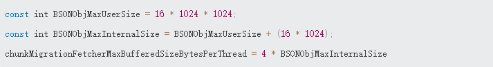 每个迁移线程缓冲文档的最大字节数,0 表示无限制,默认值 4 BSONObjMaxInternalSize (约等于 464M),具体作用请参考前面 D(T4)。不建议修改该值。