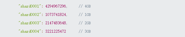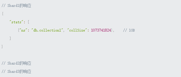 各个 shard 收到后,本地获取该表的数据大小返回给 config server ,内容如下: