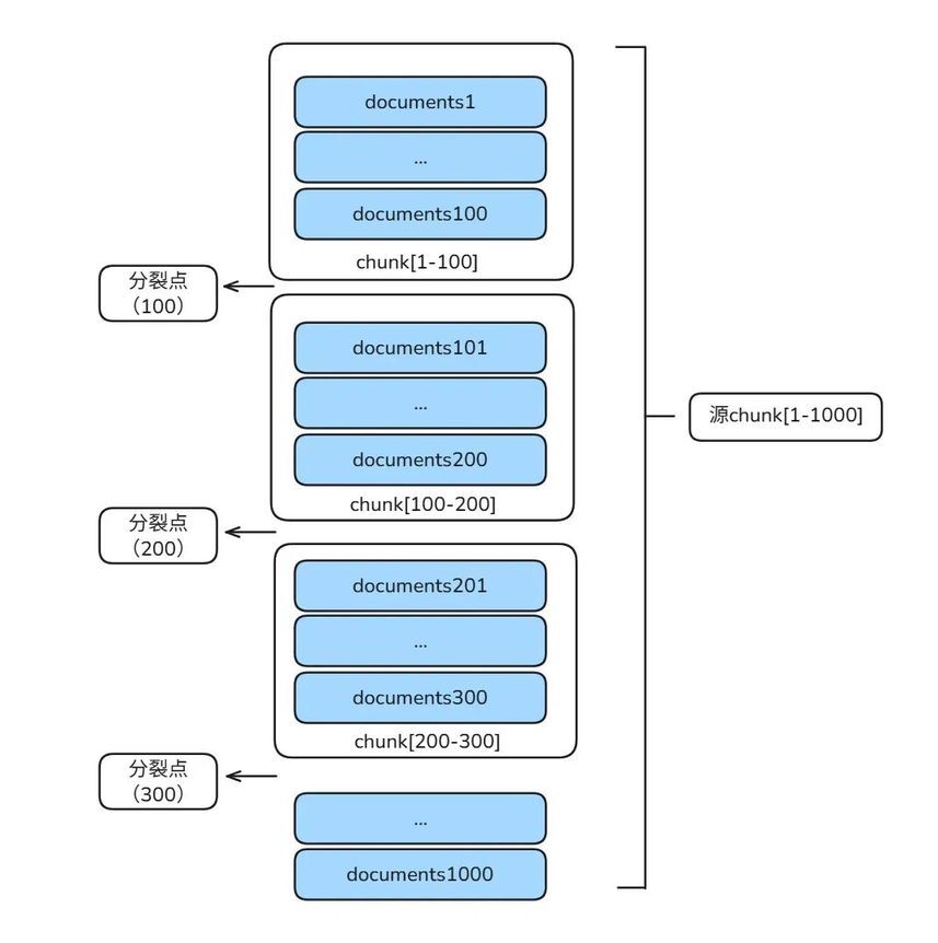 5.0 及以下版本,当 chunk 大小达到 chunksize 配置大小后会触发 split 。6.0.3 开始的高版本 split 在做 balance 的过程中由源分片“moveChunk”后台线程进行拆分,具体请参考 S(T2)章节,因此高版本一个 chunk 可以很大,甚至到 T 级别。