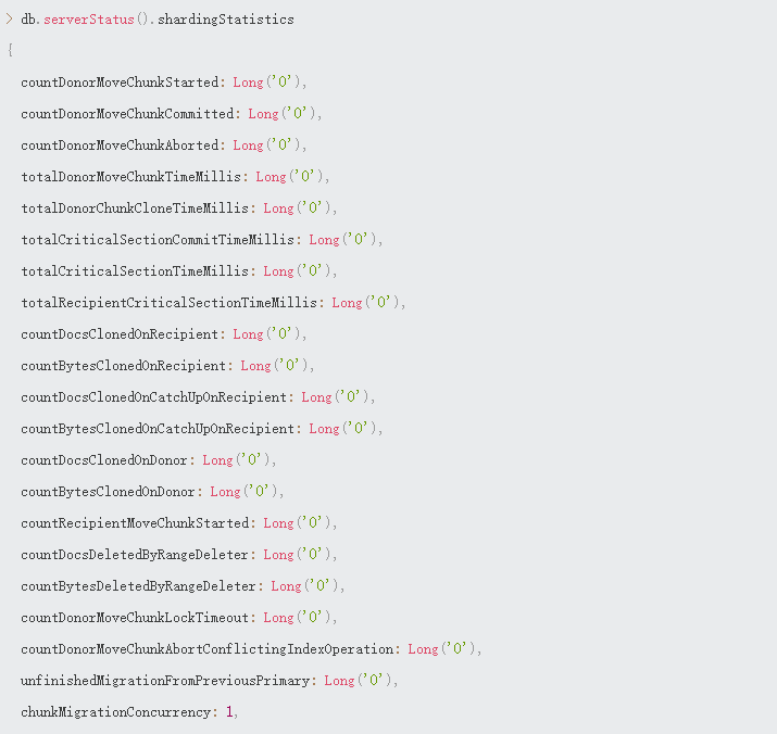 MongoDB 会对迁移过程中重要环节进行统计,可通过 db.serverStatus().shardingStatistics