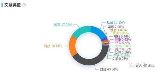 文章类型方面,6 月 28 日~7 月 4 日,信创相关文章约 40.68%属财经类别;科技、时政、社会类各占 18.14%、17.98%和 16.15%。
