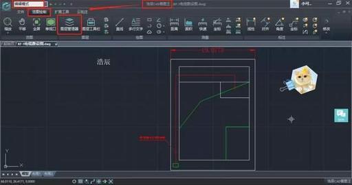 1、用浩辰 CAD 看图王电脑版打开图纸文件,并将软件切换至【编辑模式】,在工具区依次点击【览图绘制】选项卡—【图层】组—【图层管理器】按钮。如下图所示: