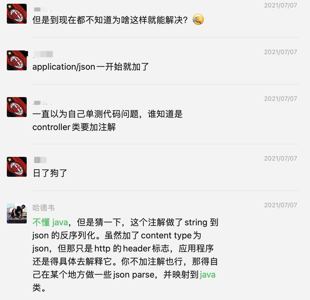 题外话,关于这个 415 错误,一定要往 Request Body 的解析上定位,否则你会浪费不必要的时间去找原因,比如这位同学: