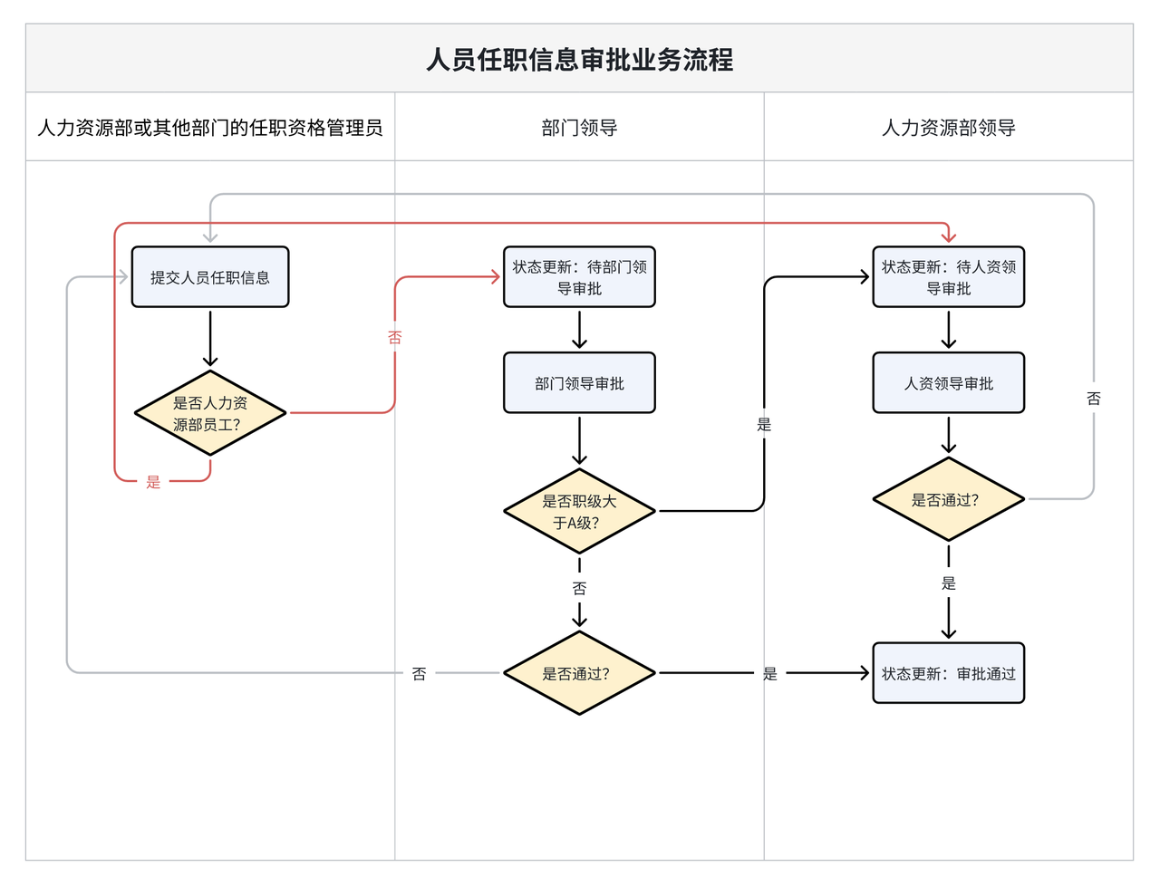此部分实现了任职资格认证的全流程线上化与标准化管理,形成一个从发起至确认的完整闭环。