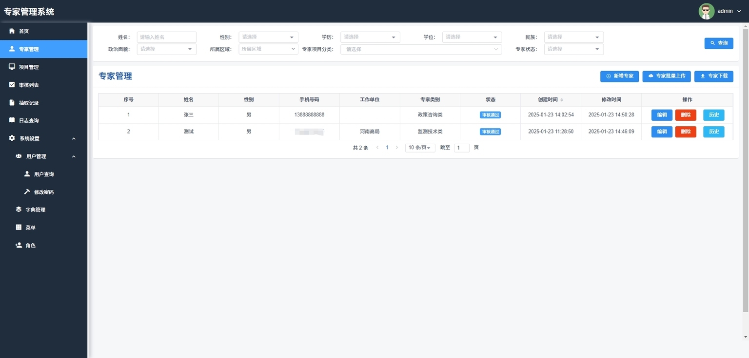 负责专家信息的维护,涵盖专家资料的添加、编辑和删除操作,实现专家信息的全生命周期管理,保障专家资源数据的准确性与时效性。