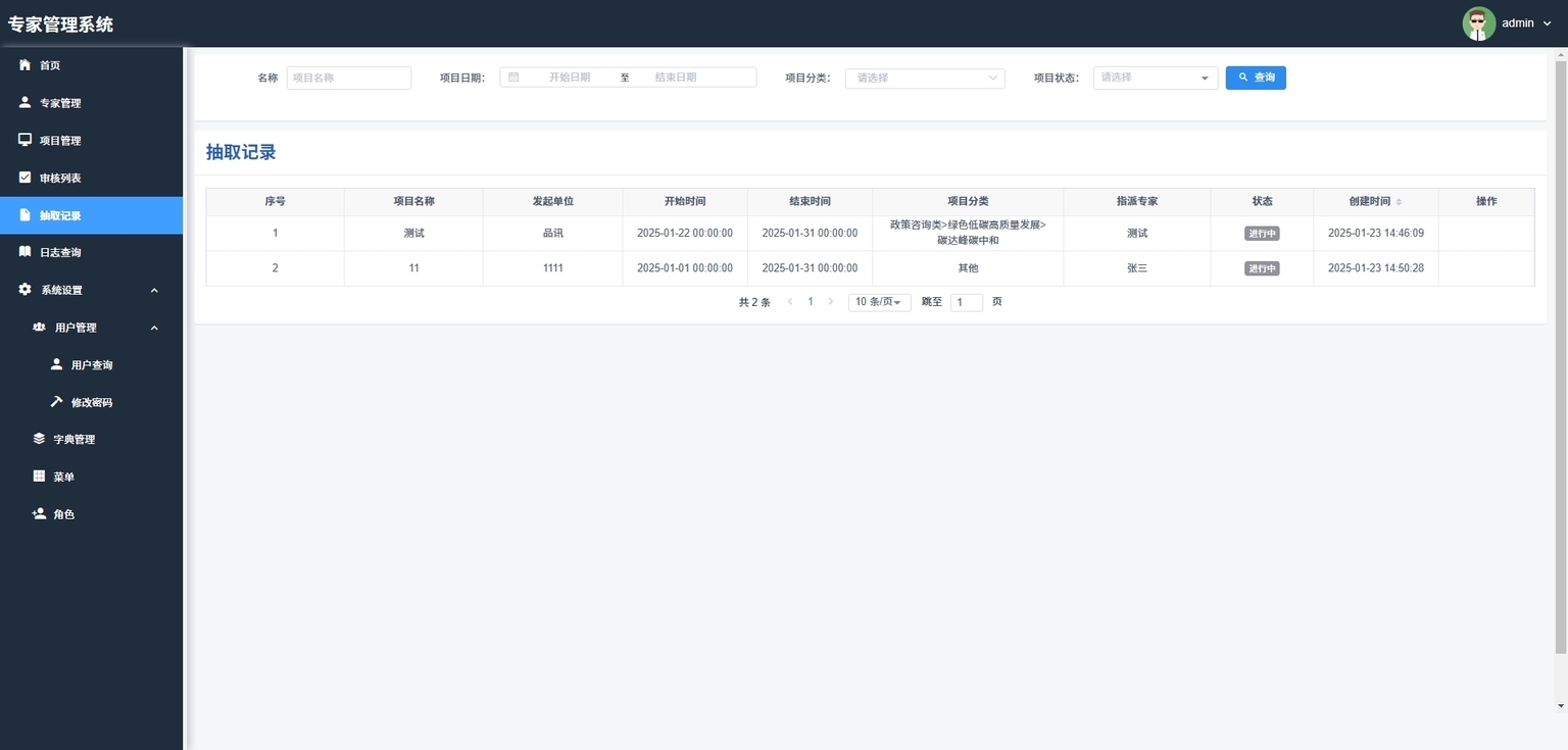 作为系统的主界面,提供快速访问其他功能模块的入口,方便用户高效开展专家与项目管理操作。