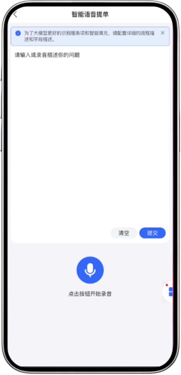 语音提单:员工通过语音描述问题(如 “服务器宕机”),AI 自动生成工单,简化了繁琐的提单流程,让提单过程变得简单、高效。