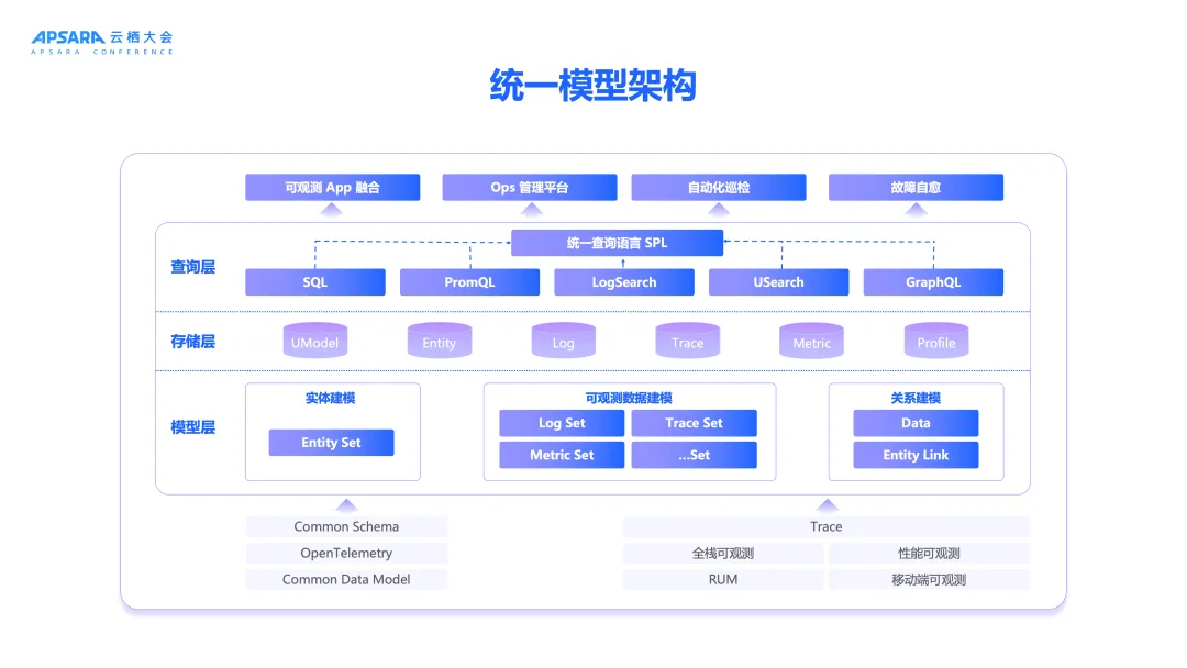 为了让不同来源、不同形态的数据真正实现语义统一与价值融合,日志服务 SLS 基于核心建模能力 UModel 构建标准化的数据模型,将日志、指标、链路及实体数据统一映射为结构清晰、属性完整、关系明确的“数字孪生”对象,赋予每一条原始记录以业务上下文和逻辑意义。这种结构化建模方式不仅增强数据的可解释性,也为上层 AI 模型提供高质量的训练与推理输入,使其能够准确识别异常模式、预测潜在风险、发现隐藏关联,从而支撑更高级别的自动化决策。