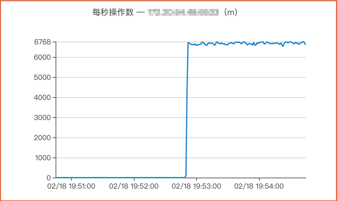 吞吐量(OPS): 系统的处理能力出现了明显的瓶颈,每秒操作数(OPS)在 6,700 左右波动,无法进一步提升。