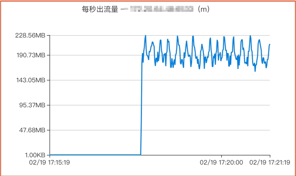 网络流量: 当客户端执行一个会产生巨大返回包的大热 Key 命令时(例如,实例带宽限制设置为 200MB/s),服务端的出口流量迅速被打满,达到 228.58MB/s 的峰值。