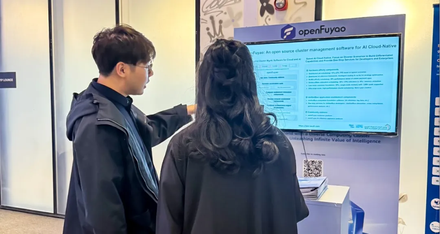 峰会期间,openFuyao 设立展台,系统解析了分布式 AI 推理框架、大规模集群调度、在离线混部调度、 NUMA 亲和调度等社区七大核心集群能力,开箱即用的轻量级容器平台、一站式 AI 推理一体机方案两大场景化参考实现,以及超节点灵衢使能等最新技术成果,展台现场吸引了大量沙特开发者、企业代表与学术研究人员驻足交流,双方技术专家就多样化算力集群的软件生态构建、性能优化及企业应用等方面进行了深入探讨。