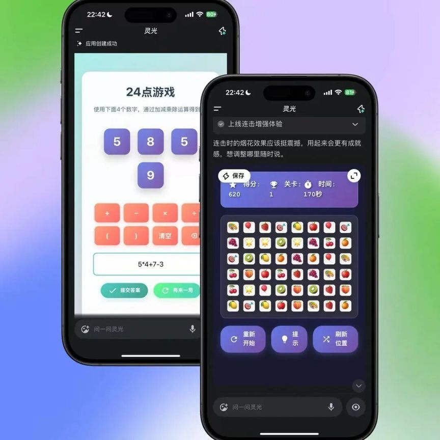 灵光生成的每一个小游戏,其实都是一次微型的「世界模拟」**。它知道重力怎么算(跳一跳),知道碰撞怎么算(消消乐),也知道怎么哄小朋友(给我儿子做的那个识字游戏)。