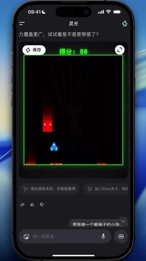 强烈建议大家去下载灵光 APP,点开「闪应用」,在对话框里输一句「做一个 xxx 游戏」。