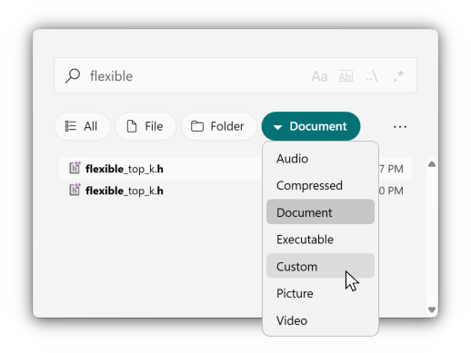 EverythingToolbar 读取在 Everything 中预先定义的自定义过滤器。要启用此功能,请在 EverythingToolbar