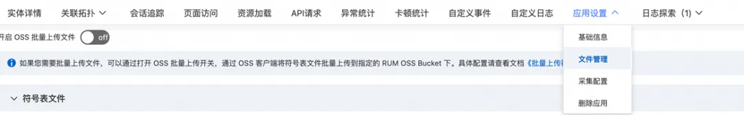 2. 进入用户体验监控(RUM)->进入您接入的应用->应用设置->文件管理