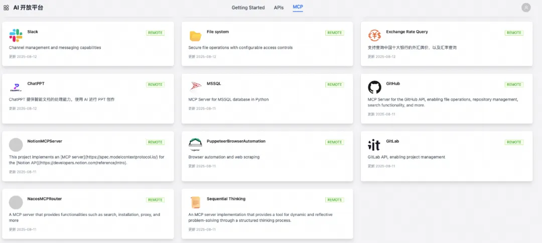 4. Nacos:Nacos 作为 MCP Registry 为门户提供全面的 MCP Server 元信息托管,版本管理,服务发现,密钥托管等能力。通过动态服务发现和动态配置变更实现系统灵活扩展和变更,通过 Nacos MCP Router 智能路由简化多 MCP 服务管理和调用。在日常开发测试的场景中,通过动态 Prompt 变更实现高效的 MCP 服务调试,在生产环境中通过多版本管理实现灰度发布,通过加密存储和动态配置变更提升安全能力。