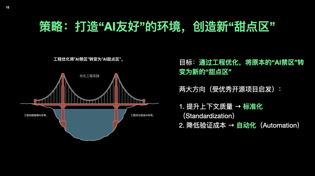 当你把那 20%–30% 的低垂果实摘完后,再往上走,靠的往往就不是换一个更大的模型,而是:让项目整体变得更「AI 友好」 。 我把它拆成两件事:标准化 + 自动化。