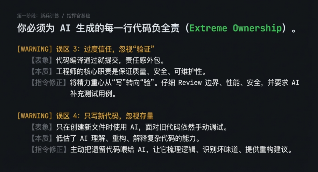 学会用 AI 来参与验证,生成测试、辅助 Review、分析错误日志,而不只是让它写新代码