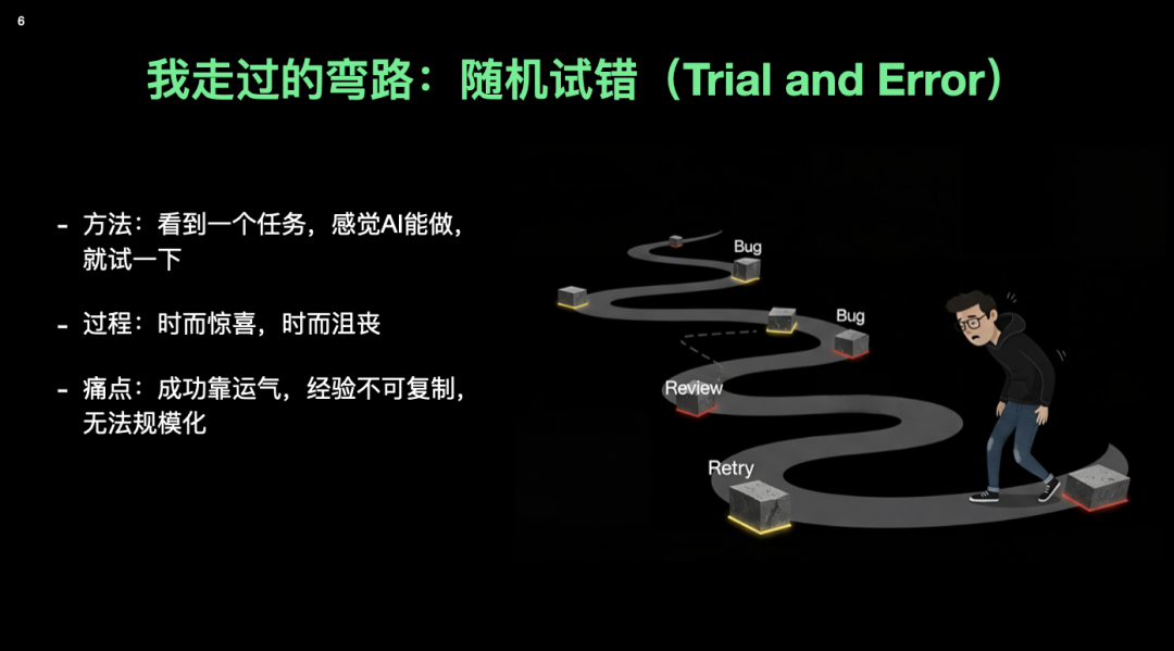 接受随机性,把精力放在设计流程、验证机制和上下文,而不是纠结每一行是不是它一口气写对。