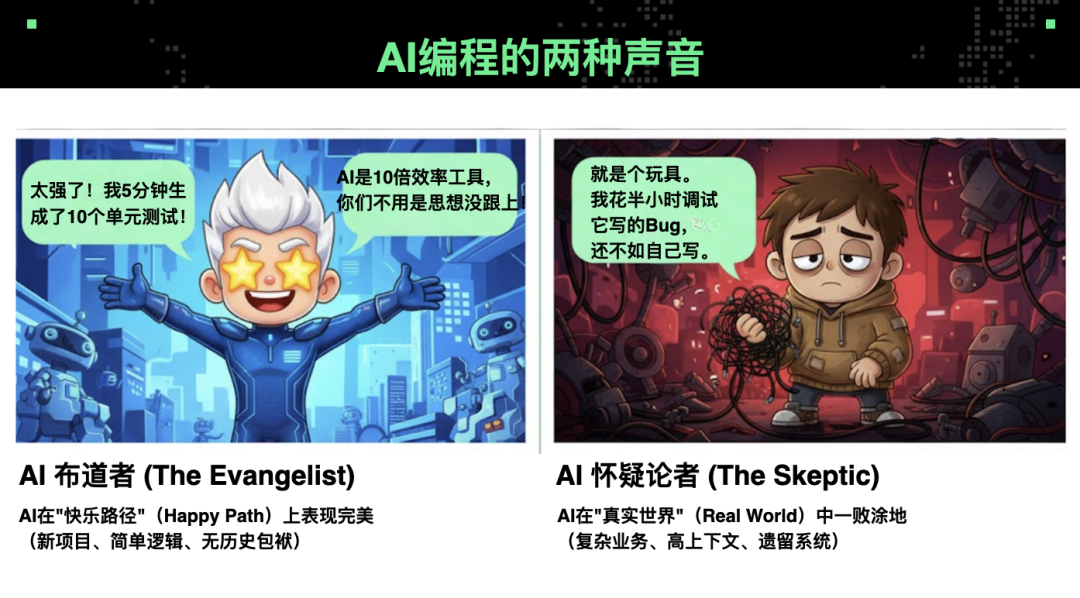 从下一节开始,我们就从这三年里我听到的两种极端声音讲起,看一看这场「从写代码到验代码」的角色变化,是怎么一步步发生的。