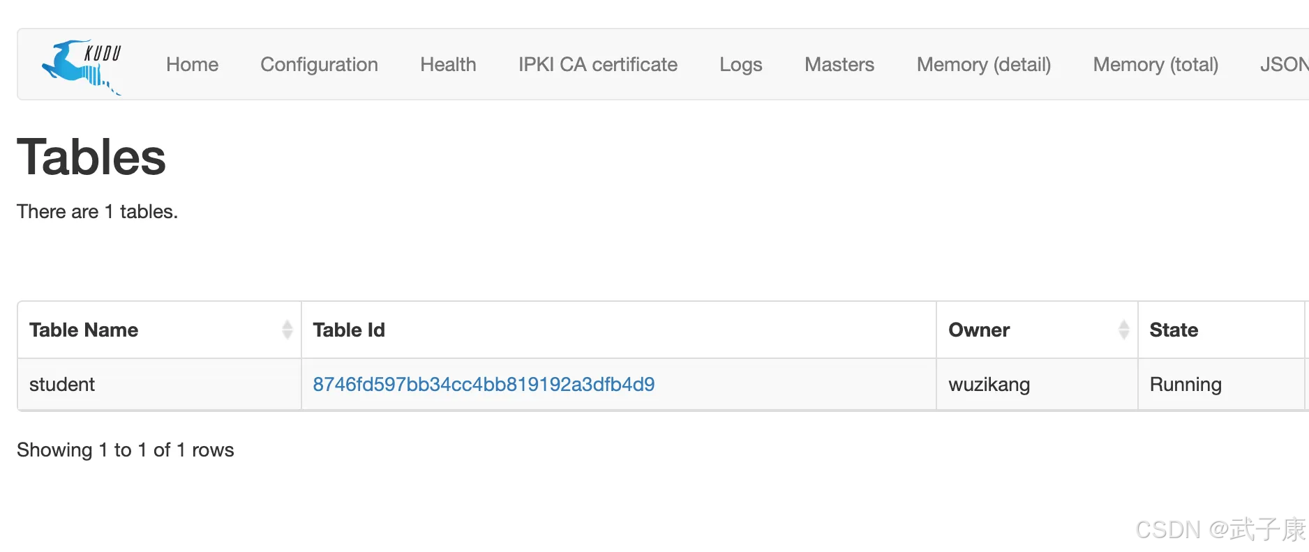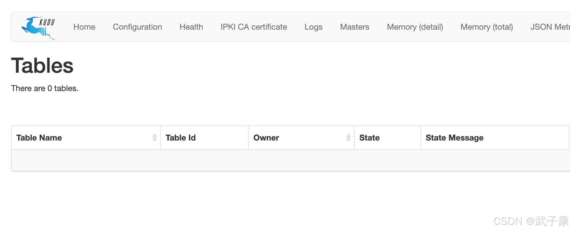 我们查看 Kudu 的 Tables,可以看到刚才创建的表如下: