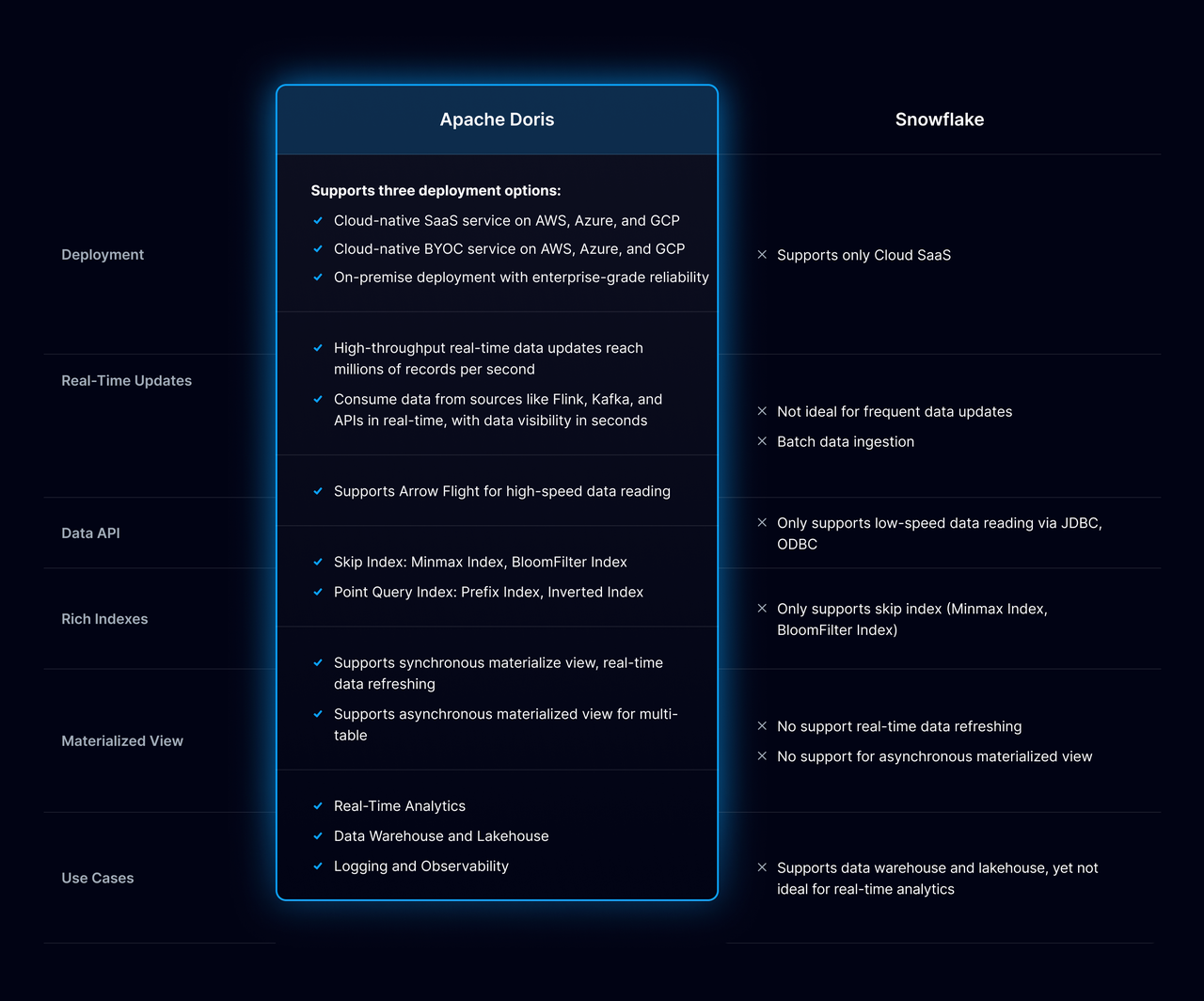 Planet 数据团队也慷慨分享了他从 Snowflake 迁移到 Apache Doris 过程中总结的经验: