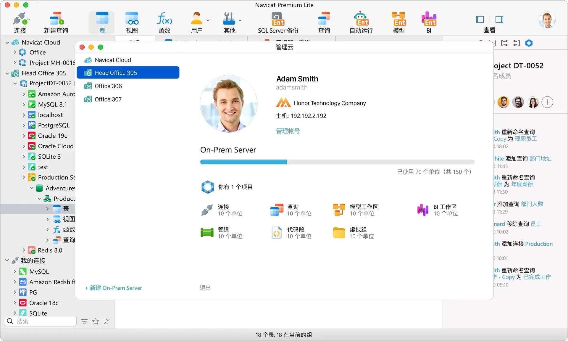 Navicat Premium Lite 是 Navicat 的精简免费版本,支持跨平台使用,它包含了用户执行主要的基本数据库操作所需的核心功能。它允许你同时连接到各种数据库平台,包括 MySQL、PostgreSQL、SQL Server、Oracle、MariaDB,以及 Redis 和 MongoDB 等 NoSQL 数据库,所有这些操作都可以通过一个应用程序来完成。