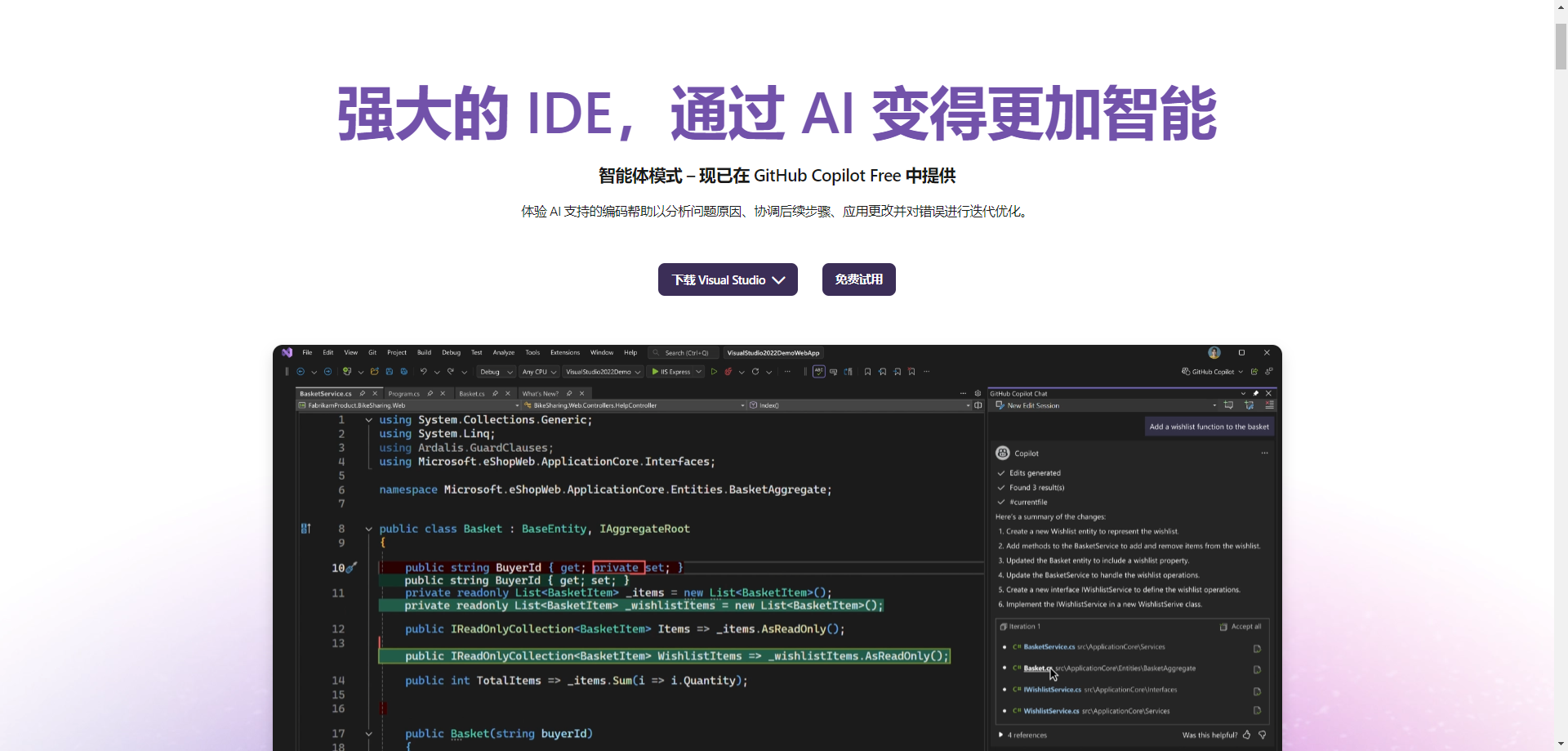 GitHub Copilot 是一款 AI 编码助手,可帮助你更快、更省力地编写代码,从而将更多精力集中在问题解决和协作上。