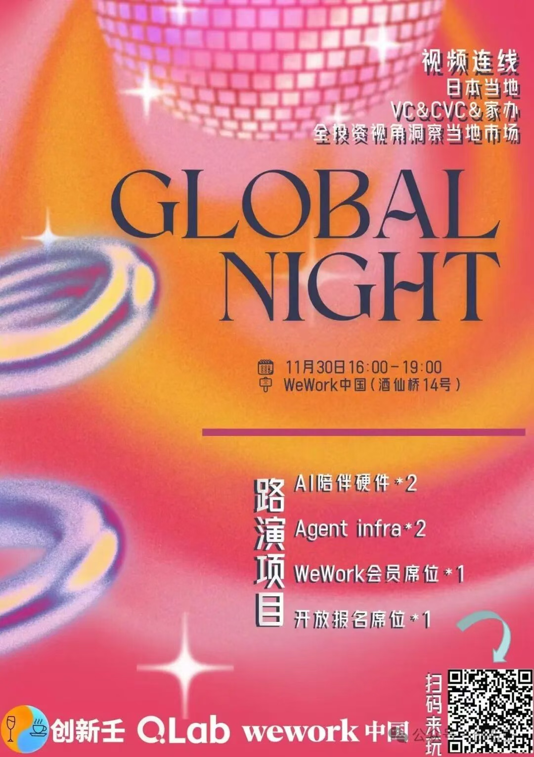 Global night 是由创新壬发起的创业者线下聚集,共同视频连线海外投资人的系列路演活动,是创新壬全球化探索的第一步,也希望成为 babystartups 全球化探索的第一步!