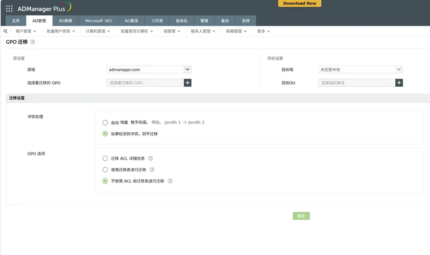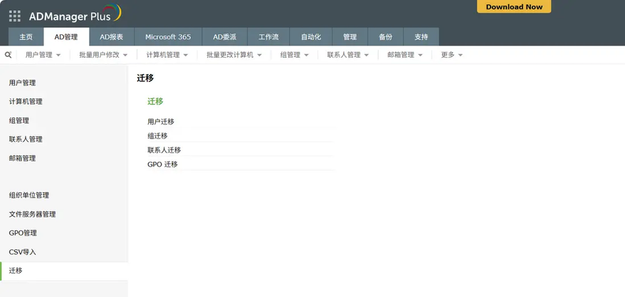 立即下载 ManageEngine ADManager Plus,体验迁移 AD 环境的无缝解决方案。