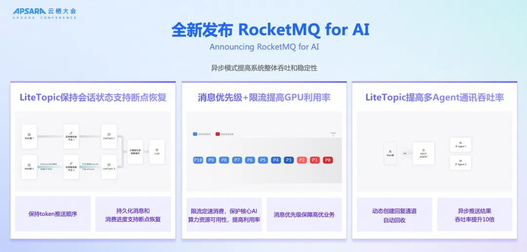 这一创新架构的实现,依托于 RocketMQ 为 AI 场景深度优化的四大核心能力: