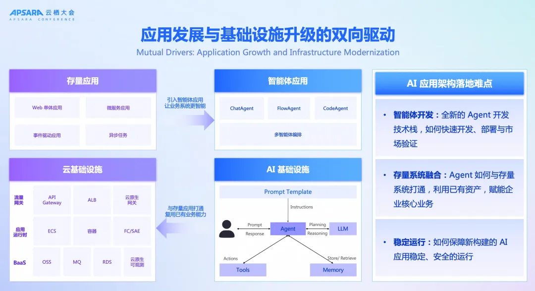由此看来,智能体应用已经逐步成为客户应用架构中的重要组成部分。这个演进过程,应用的发展和基础设施的升级是双向驱动、相互成就的。