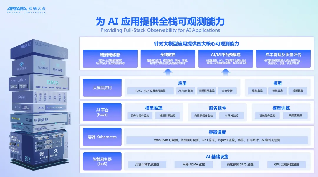 为应对上述挑战,阿里云 AI 可观测解决方案提供了:
