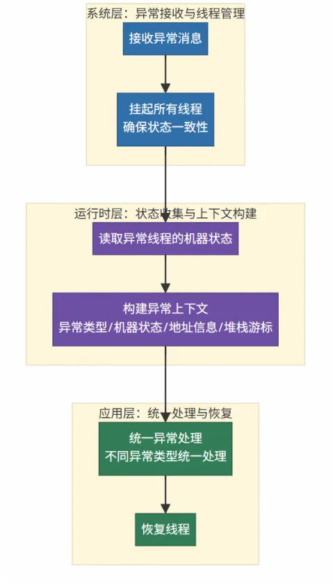 硬件异常 → Mach 异常: CPU 异常被 Mach 内核捕获,转换为 Mach 异常消息