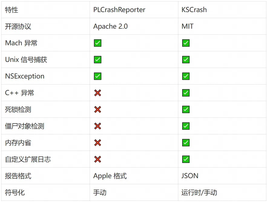 在 iOS 端侧异常监控领域,PLCrashReporter 与 KSCrash 是最常用的两个内核库。两者都是开源、生产可用,且被多家平台化产品或 SDK 采用作为底层能力。