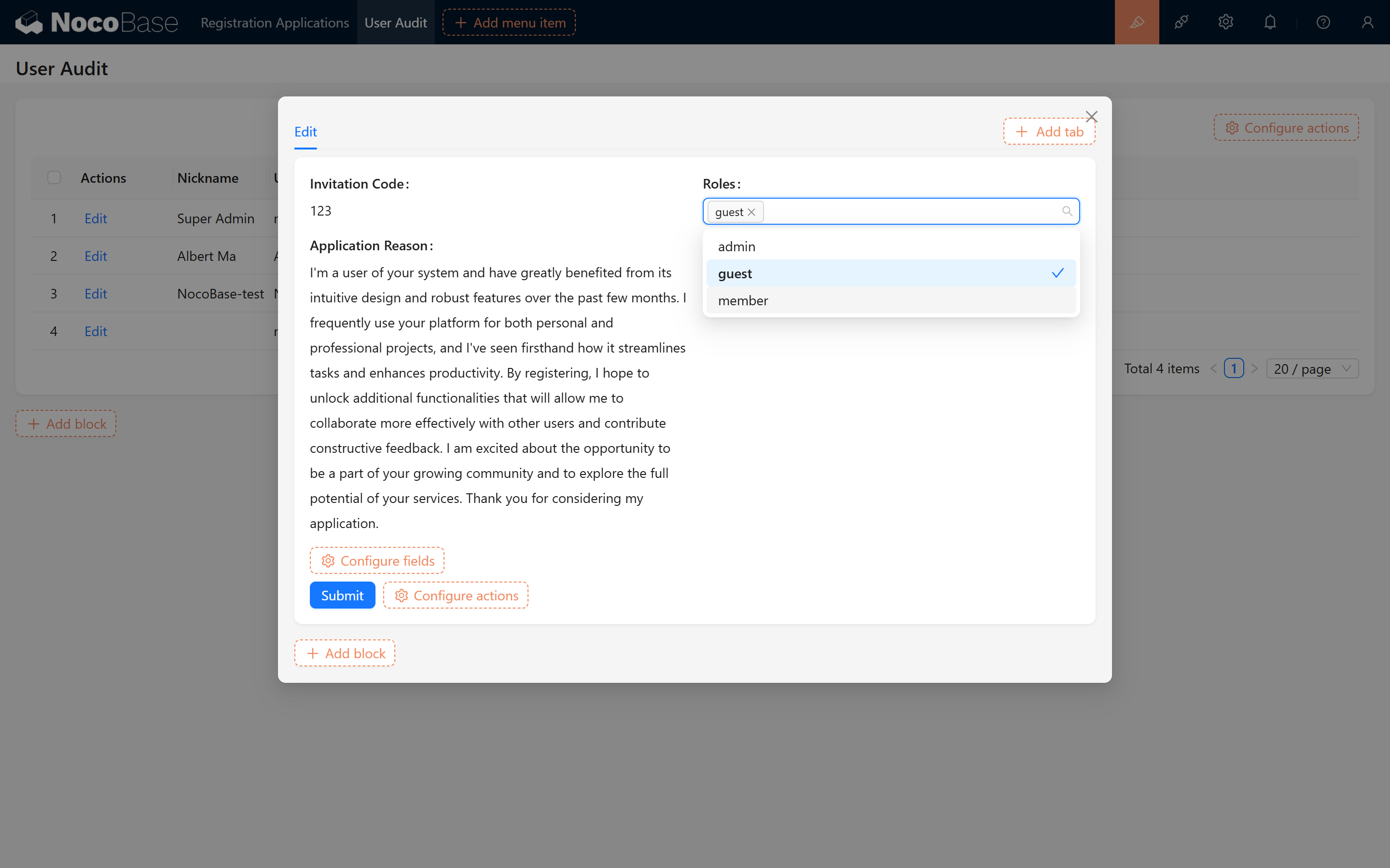 如何在 NocoBase 中实现注册用户审核