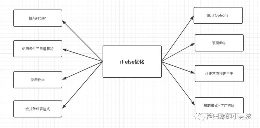 代码中如果if-else比较多,阅读起来比较困难,维护起来也比较困难,很容易出bug,接下来,本文将介绍优化if-else代码的八种方案。转载至https://mp.weixin.qq.com/s/mi0KVS-jO0rk96g7wRdhFw