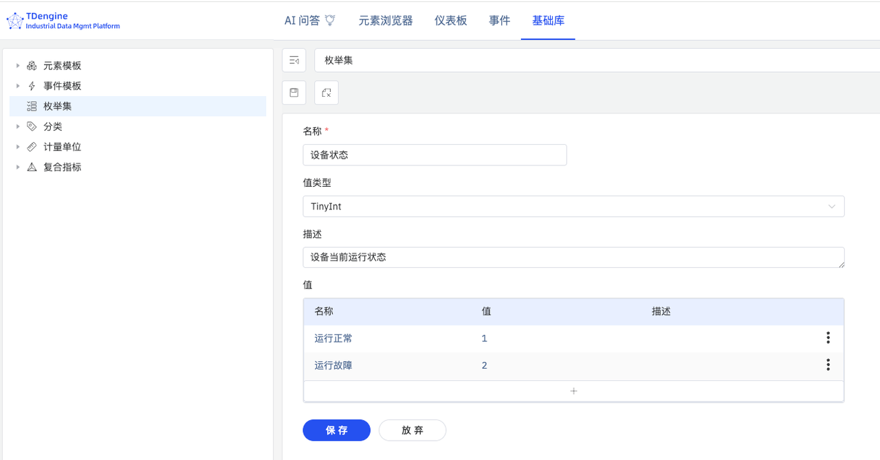 TDengine IDMP 支持将状态、类型等枚举列表映射到设备状态、物料分类等数据引用属性,使原本静态的枚举编码能够与实际业务对象建立关联。通过这一机制,枚举值不再只是用于展示或筛选,而是可以作为主数据引用的一部分参与分析与管理。当设备、物料等主数据发生更新时,相关的数据模型、分析结果和报表也能够同步反映变化,减少人工维护成本,并为后续的资产分析、运维联动和业务扩展提供更稳定的数据基础。