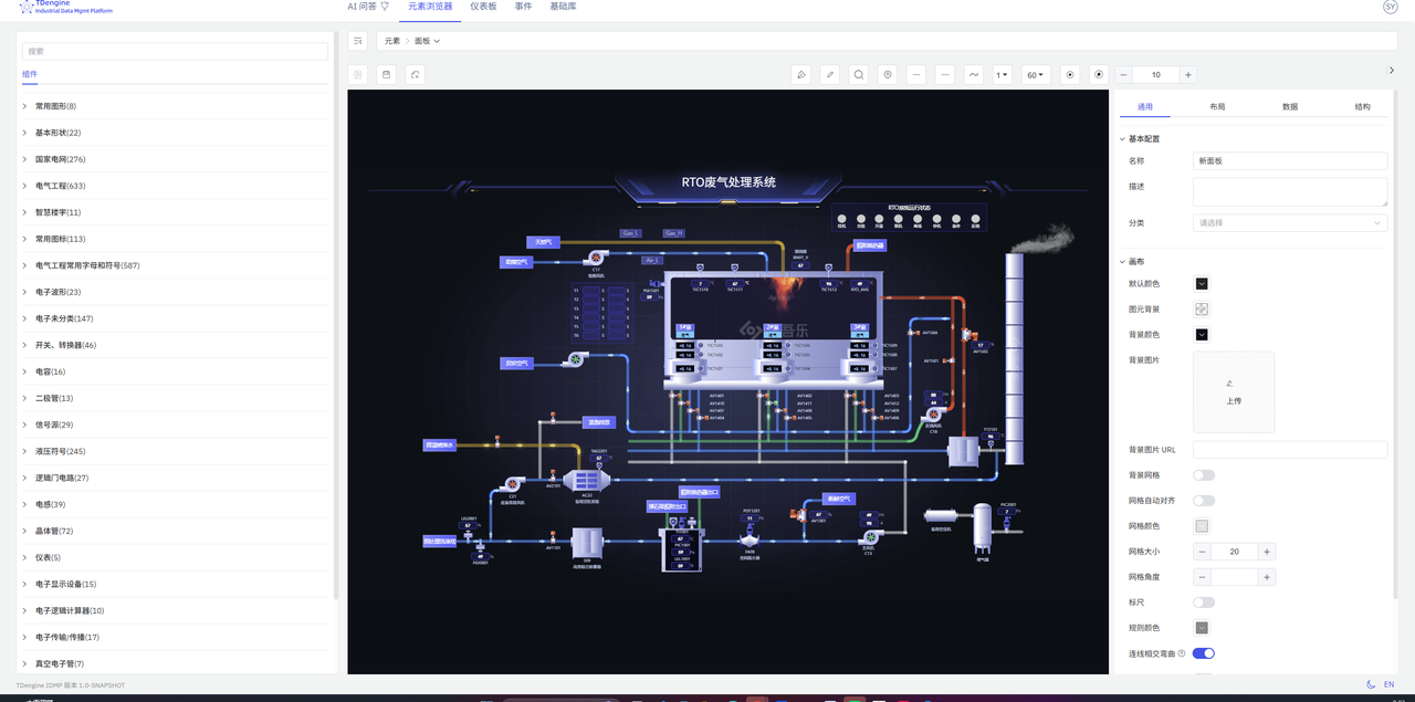 随着使用场景的复杂化,工业数据在不同角色眼中需要以不同方式被理解和使用,单一的数据列表已难以支撑运维监控和管理决策。TDengine IDMP 在面板基础上引入高级组态能力,允许用户将数据进一步组态为监控看板、工艺流程图等业务化界面。通过在同一套实时数据之上构建多种视图,用户无需定制开发即可快速形成适配调度、设备管理或经营分析等不同场景的应用界面,实现 “一份数据、多种视图、N 种应用”,使关键信息能够在更合适的情境中呈现,提升异常响应效率与决策准确性,也增强了业务人员对数据价值的直观感知。