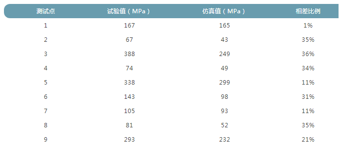 应力均未超过材料许用应力 460MPa,仿真值与实测值基本相差不大。