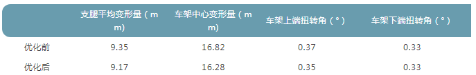 约束条件:支腿平均变形不低于原车、车架中心点变形不低于原车、车架扭转角不低于原车;